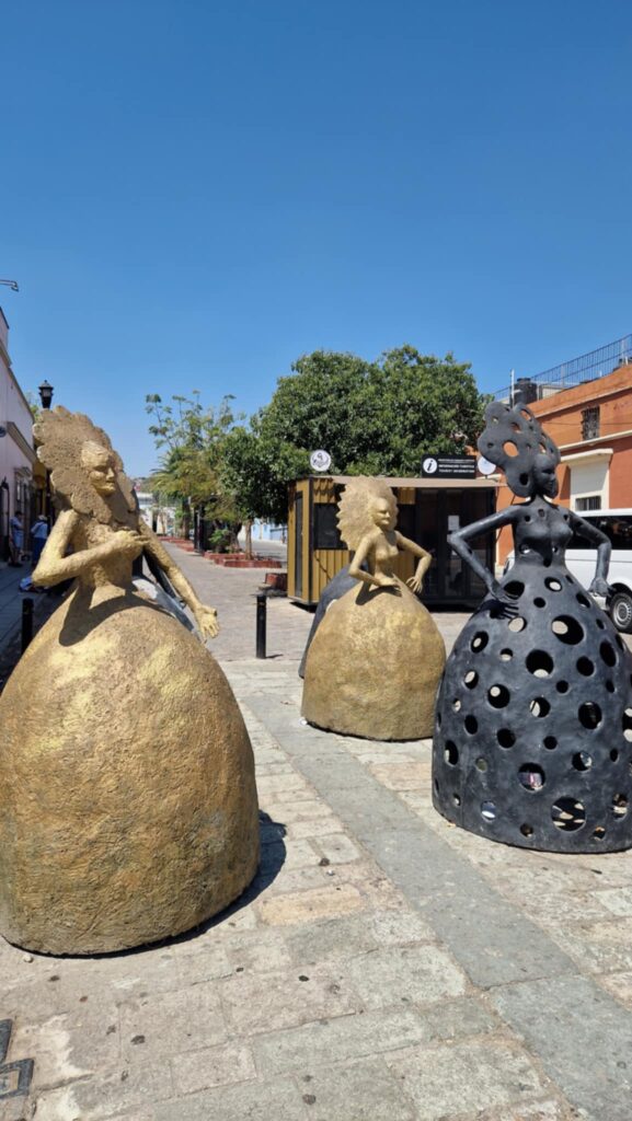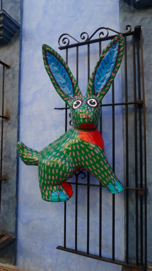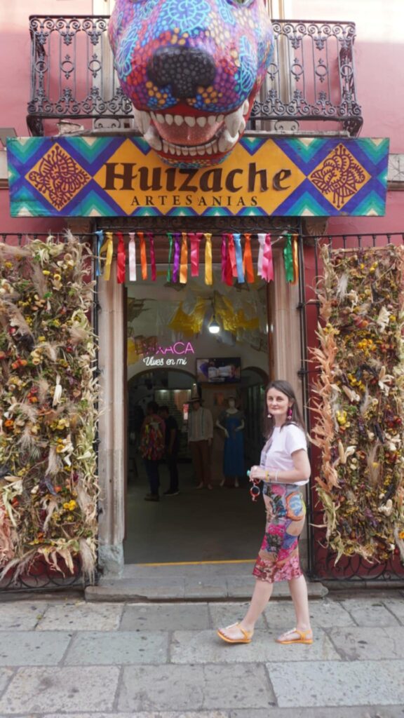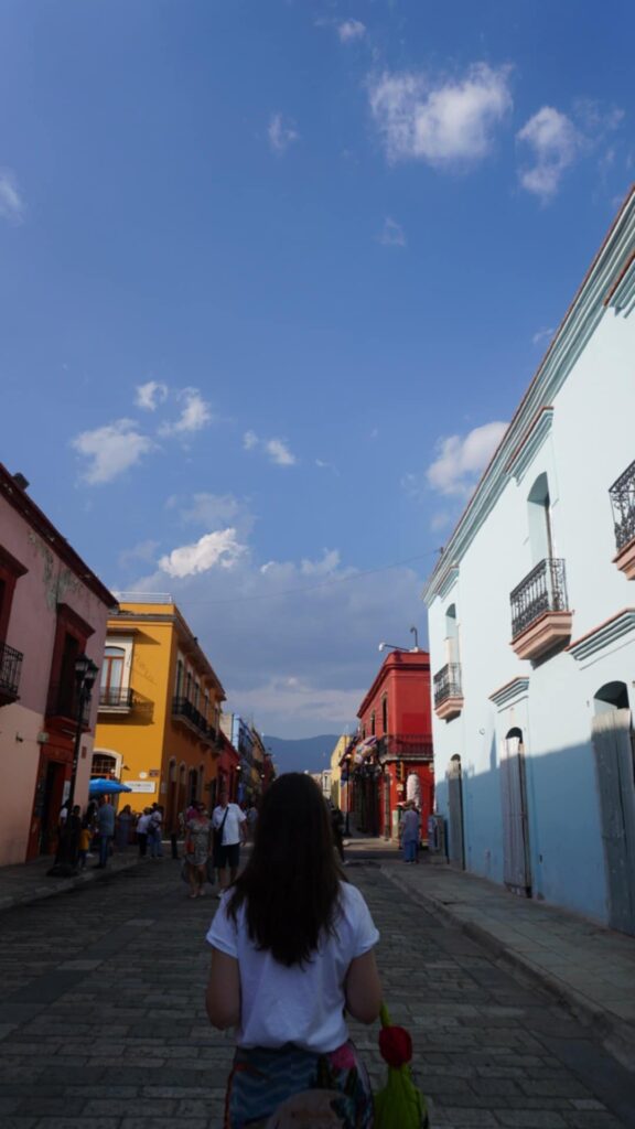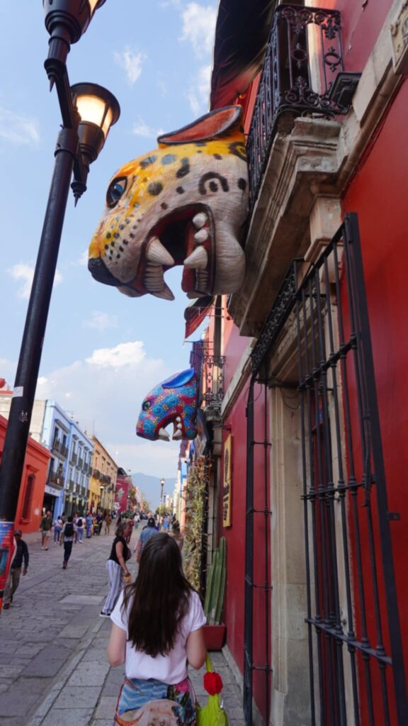 За да стигна до Уахака, тръгнах с кола от Пуебла. Почти по целия път се минава пред гора от кактуси. Пейзажът от кактусови стъбла се простира по цялата западната Сиера Мадре, чак да самия града. Искаше ми се да посетя тази част на Мексико, защото там са концентрирани три от нещата, които много ме вълнуват – езиково разнообразие, занаятчийски текстил и родното място на цветните жени скелети. Като и едноименният щат, и Уахака Сити, са неповторими в своята пъстрота.